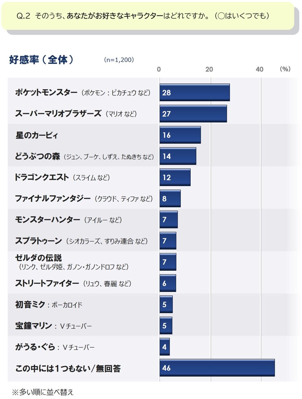 全ジャンルの好感度ランキングでも4位ポケモン、5位マリオ