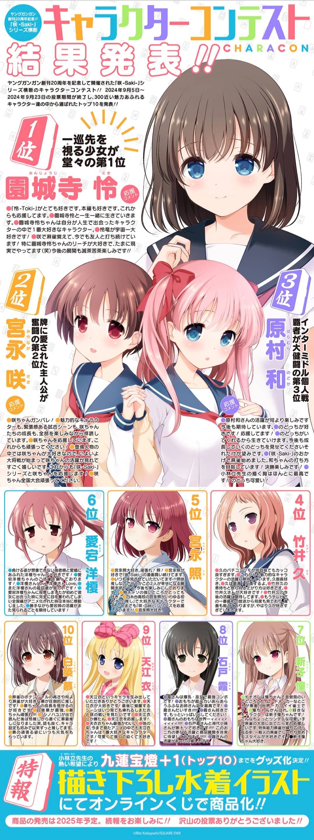 1位:園城寺怜 2位:宮永咲 3位:原村和