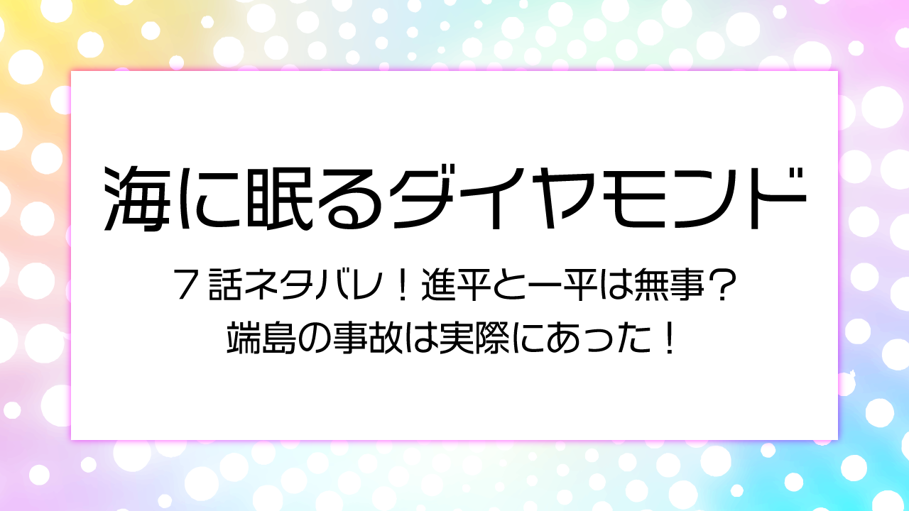 @78Peche7話。進平の命が危ないかもと見せかけて一平さんが危ないかもしれない。と言う予想。 #海に眠るダイヤモンド