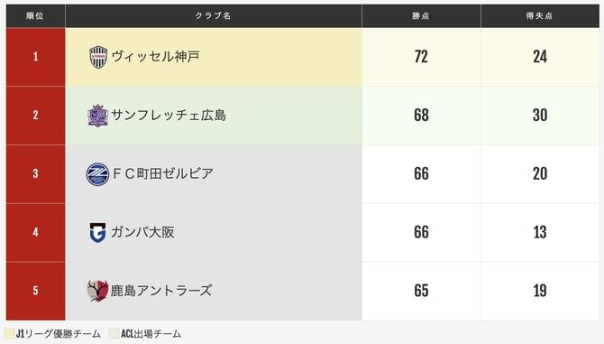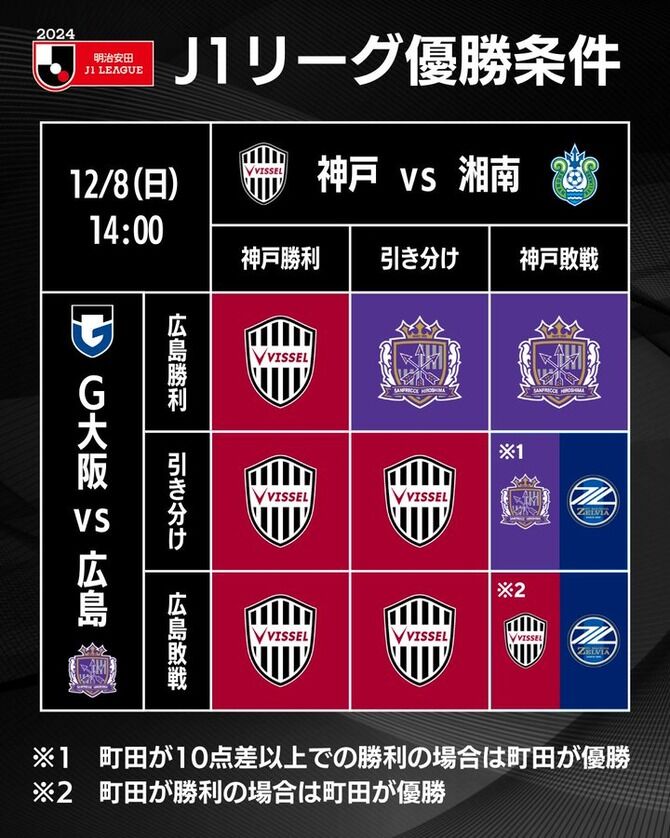 神戸 2-0 湘脚大 1-0 広島鹿島 3-1 町田→このままいくと神戸優勝