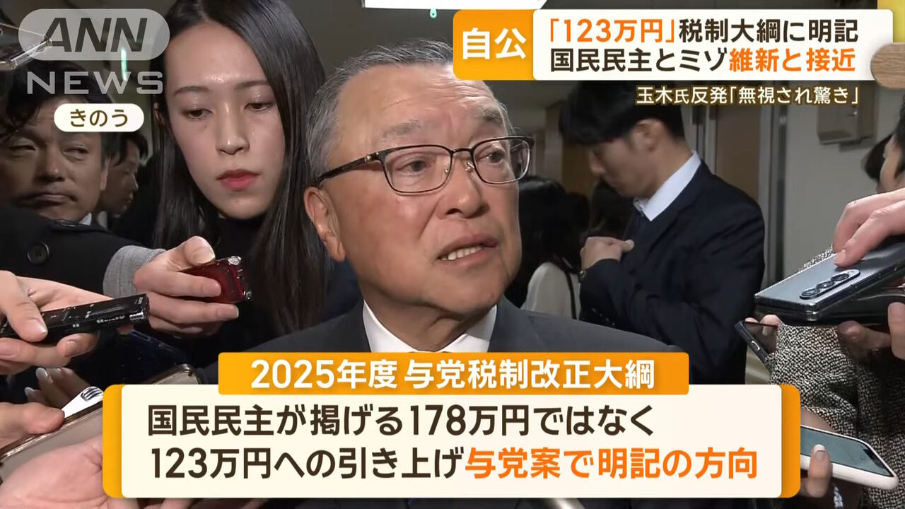 与党は「103万円の壁」の引き上げ幅を巡って、123万円で税制大綱に盛り込む方針です。