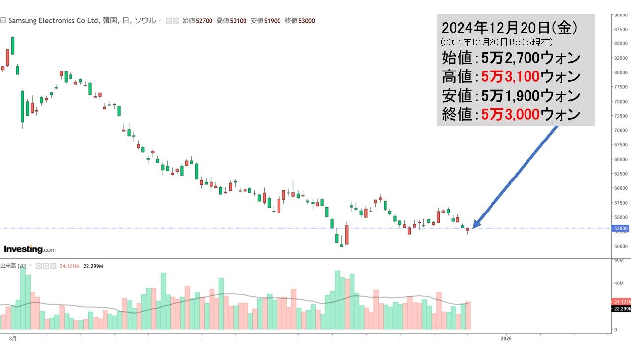 別に尹錫悦(ユン・ソギョル)大統領が非常戒厳を宣布しなくても、そもそも韓国株式は(先進国と自称するのに反して)下落傾向でした。