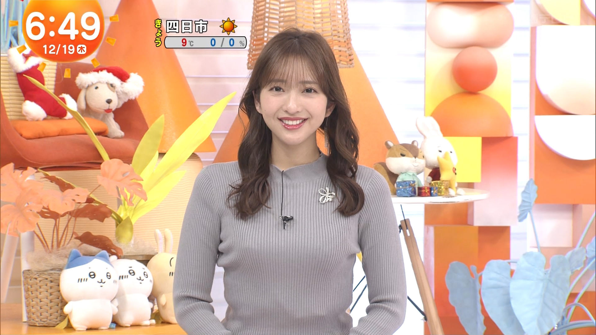 ニットの藤本万梨乃アナはサンタコスも披露しました! [2024年12月19日 めざましテレビ]