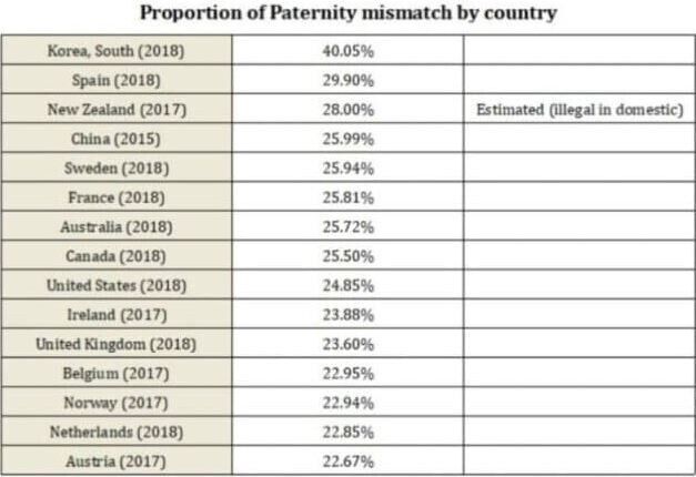 韓国が父子関係確定検査の不一致が圧倒的1位で、カッコウの国だった!