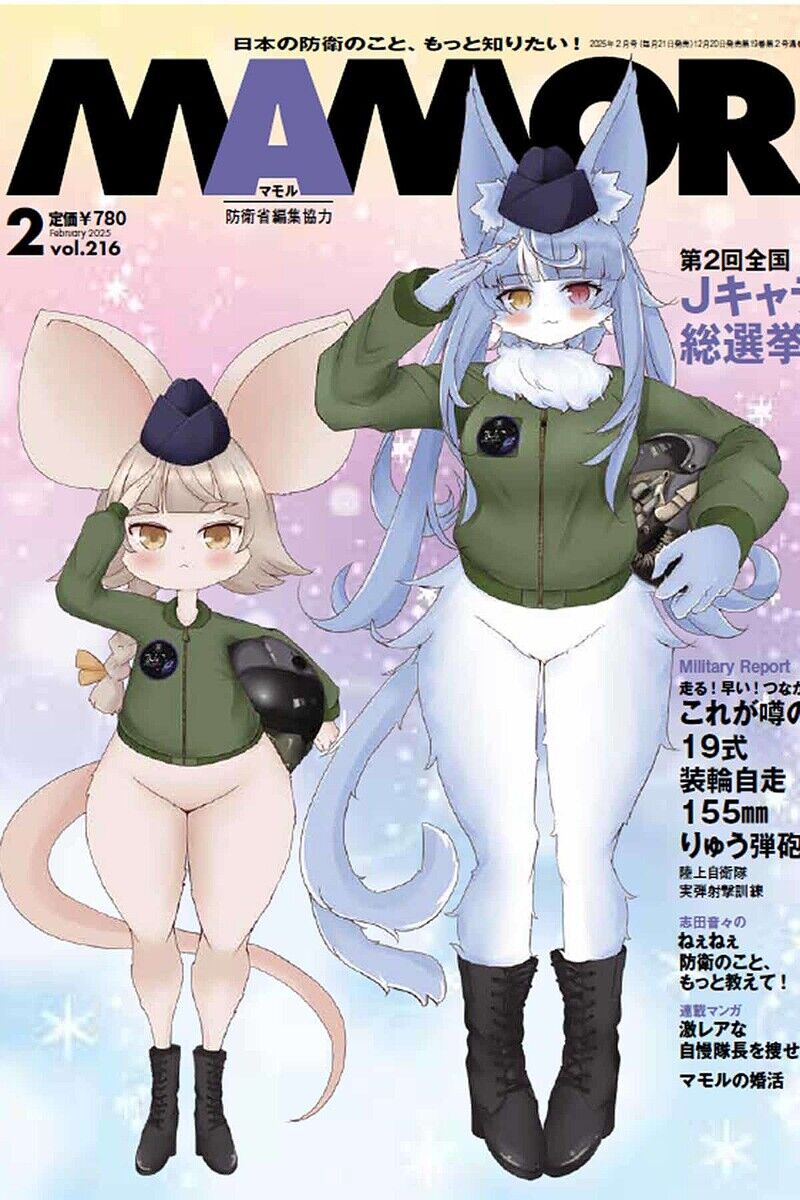 「賛否が渦巻いているのは『MAMOR』の最新号となる2025年2月号(12月20日発売)の表紙です。この号では『第2回全国Jキャラ総選挙!』の見出しとともに、表紙に、擬人化した萌えキャラ2体が敬礼ポーズを取るイラストを掲載しています。
