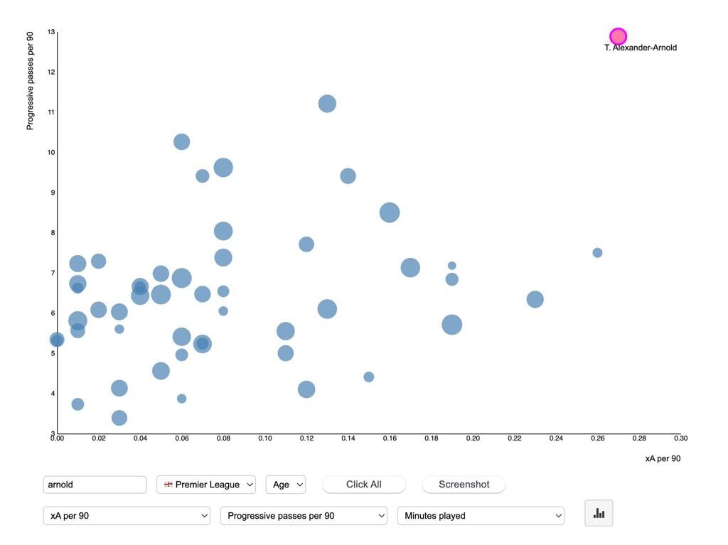 Trent Alexander-Arnold vs Premier League fullbacks, per 90