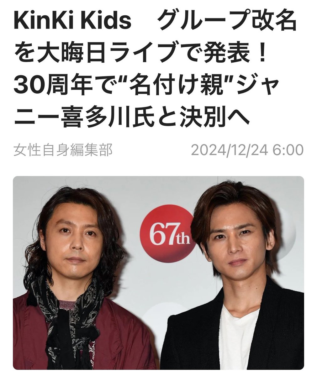 改名発表【KinKi Kids】から”DOMOTO”へ!!!!!(*’▽’)