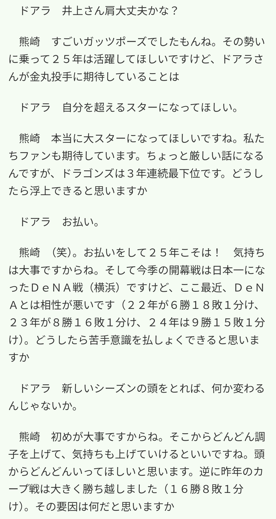 Q「ドラゴンズは3年連続最下位です。どうしたら浮上できると思いますか」 ドアラ「お払い」