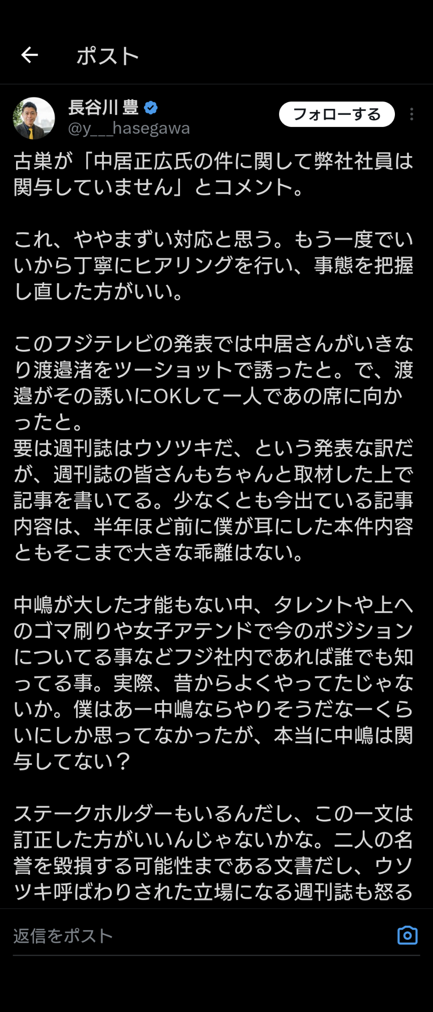 スナイパー小屋ほんこん「俺、中居くんと女子アナの真実立花孝志氏「二度とテレビで立花氏は中居さんについて、「(地上波テレビ放送では)完全に出てこれない