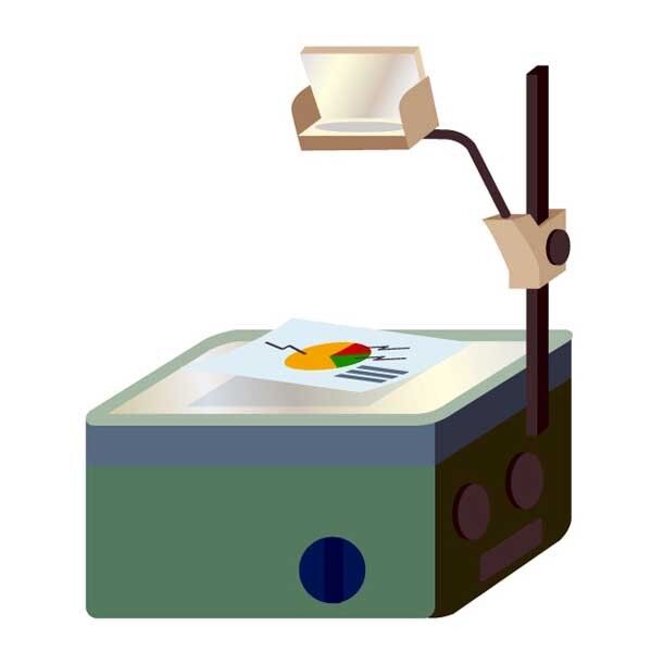透明のシートに書いた文字やイラストを天井からつるされたスクリーンに映し出すもの