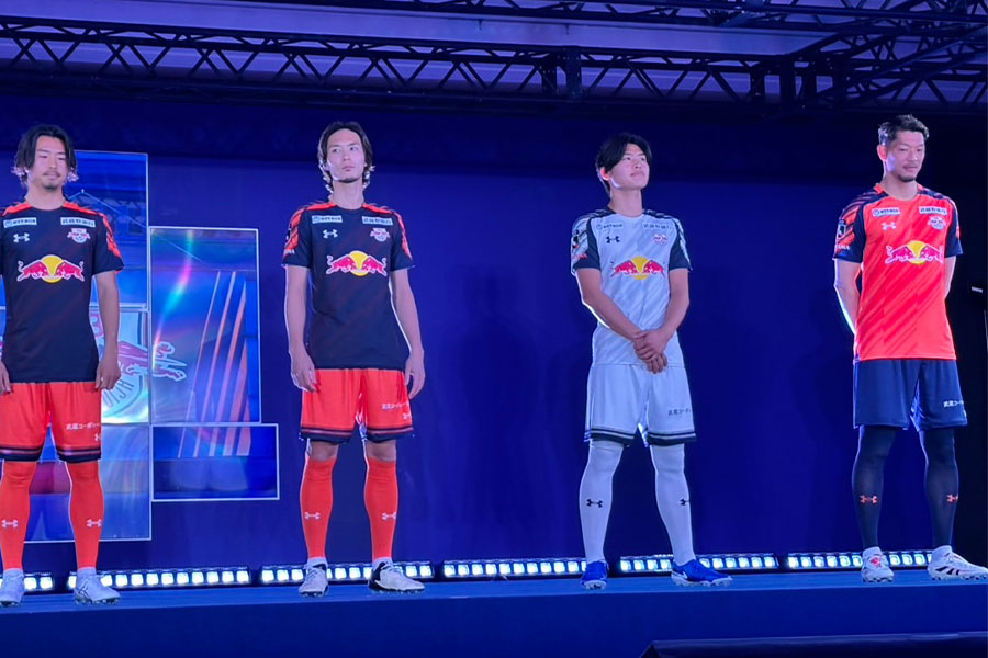 レッドブル新体制で今季の戦いぶりが注目されるなか、まずはユニフォームのカラー変更でファン・サポーターを驚かせた。1stユニフォームはネイビーカラーを基調とし、パンツとソックスにオレンジ色を残した。