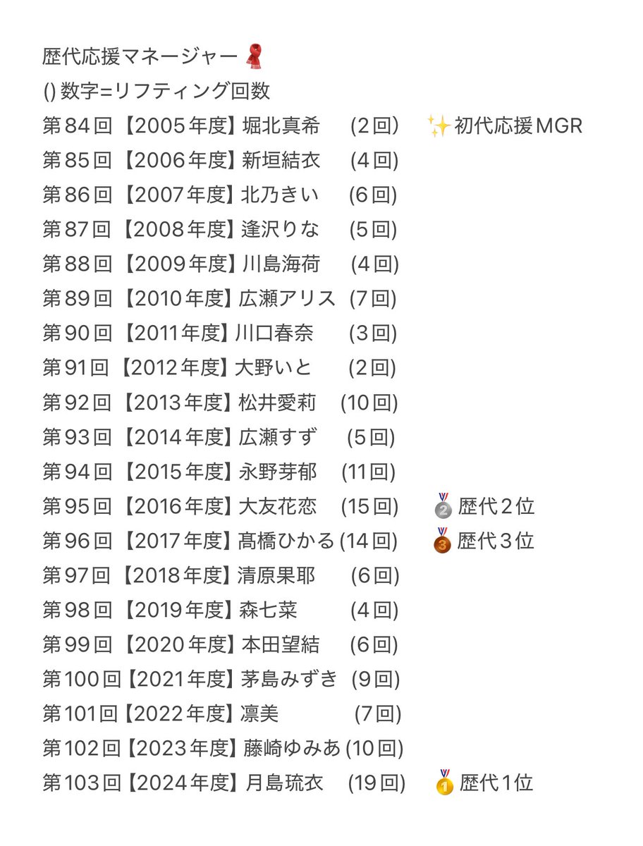 歴代応援マネージャー