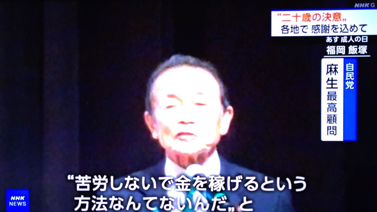 麻生太郎「苦労しないで金を稼ぐ事なんて出来ない。まともな二十歳は闇バイトなんて引っかからない」