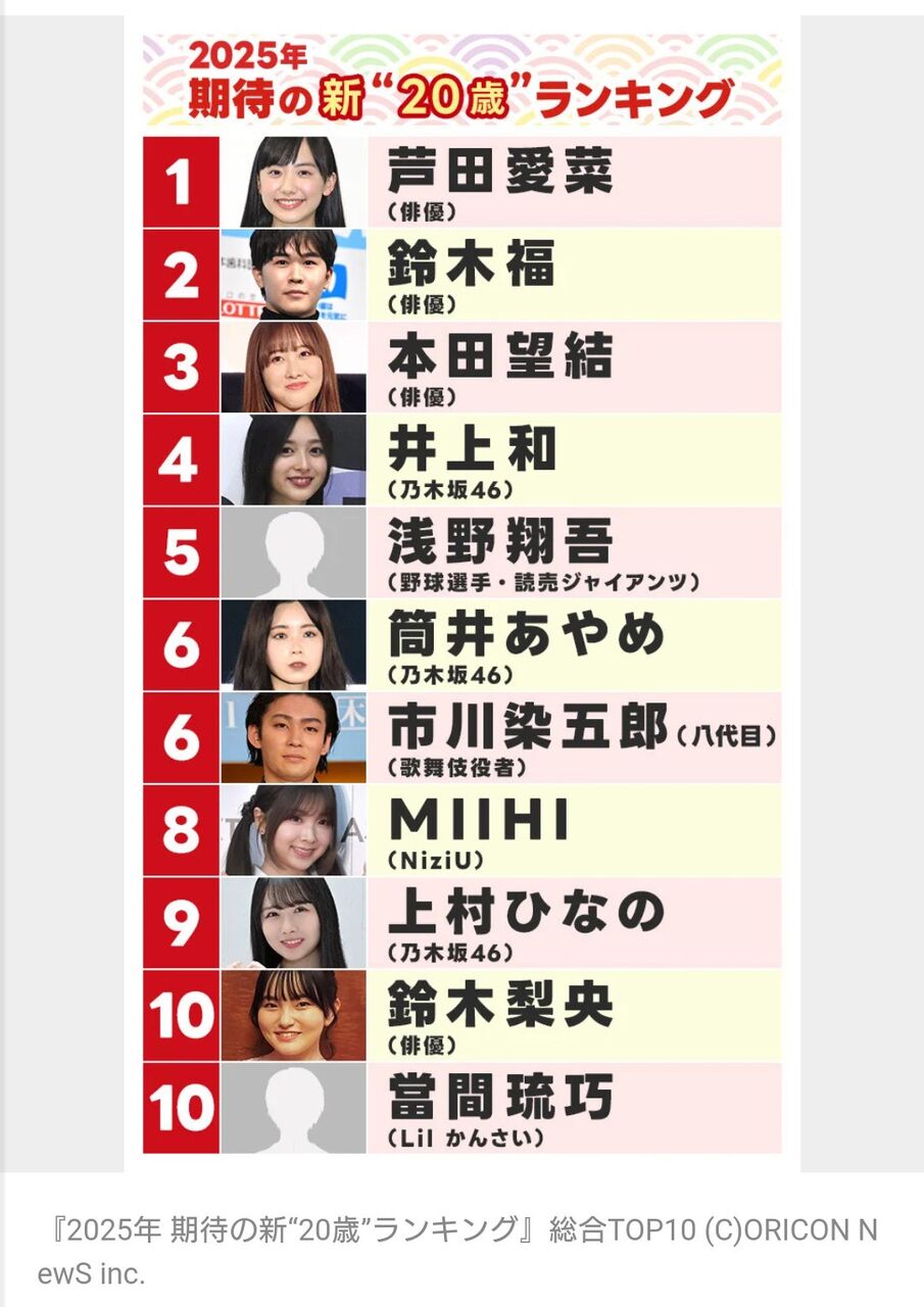 【ランキング表】愛菜ちゃん、福くんらが揃ってランクイン、各界のホープが集結した『期待の新“20歳”』TOP10