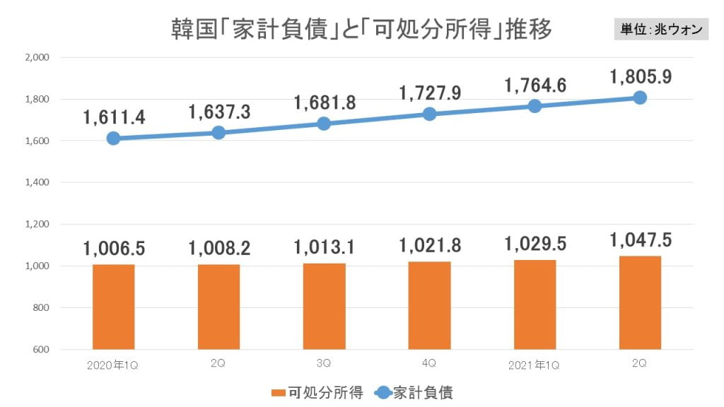 つまり、所得よりも借金が増えるスピードの方がはるかに速いのです。このデータは韓国の家計が困ったことになっていることを如実に示しています。