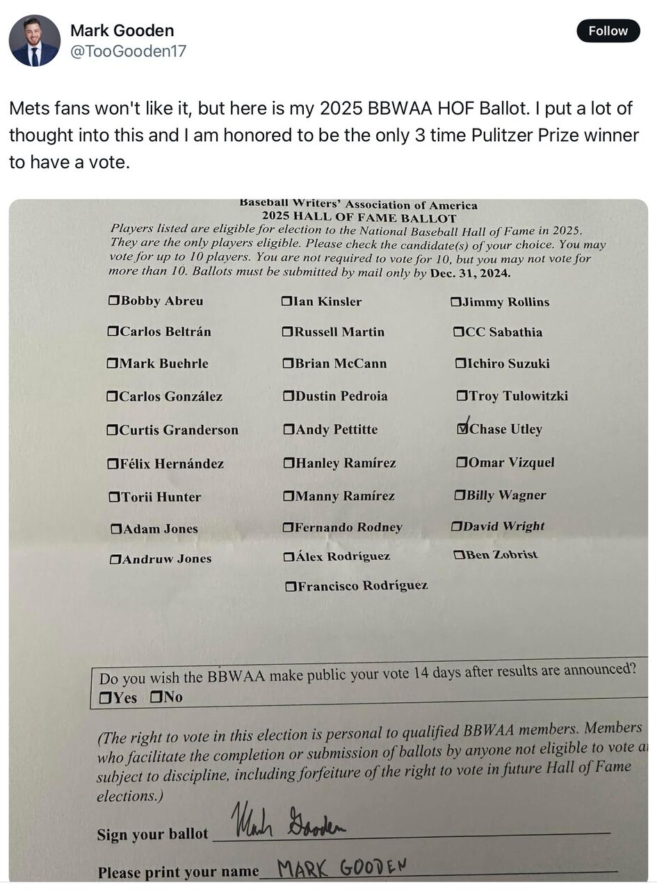like it, but here is my 2025 BBWAA HOF Ballot. I put a lot of thought
