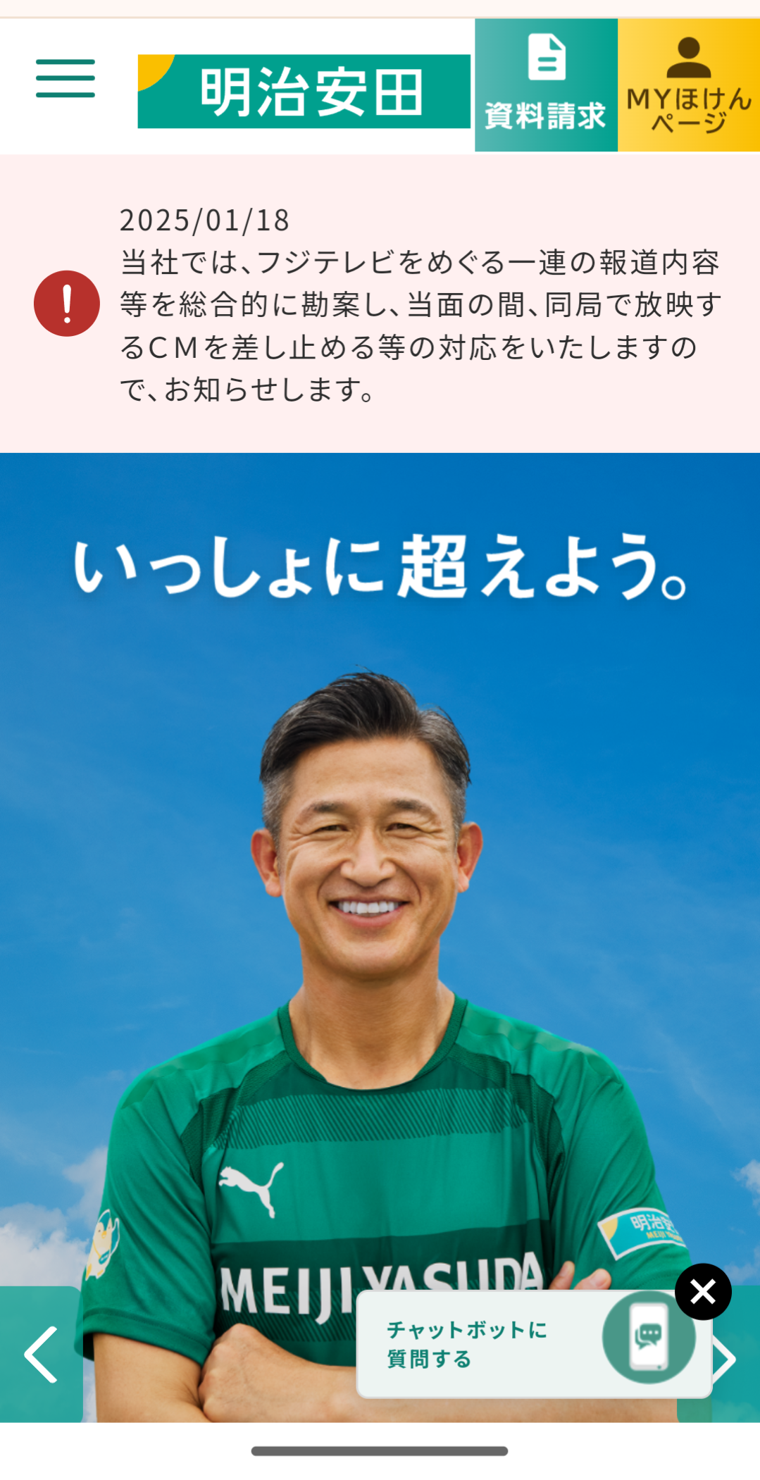 当社では、フジテレビをめぐる一連の報道内容等を総合的に勘案し、当面の間、同局で放映するCMを差し止める等の対応をいたしますので、お知らせします。