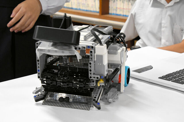開発したのは科学部2年生の杉田光優さん、酒田悟充さん、市千輝さんでつくるチーム「Memories」。中学校に3人を訪ね、ロボットの躍動ぶりを見せてもらった。