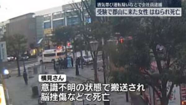 22日午前6時半ごろ、福島県のJR郡山駅前で、受験生の女性(19)が飲酒運転の軽乗用車にはねられる事故があり、女性は死亡しました。警察は、車を運転していた会社員の男(34)を現行犯逮捕しました。