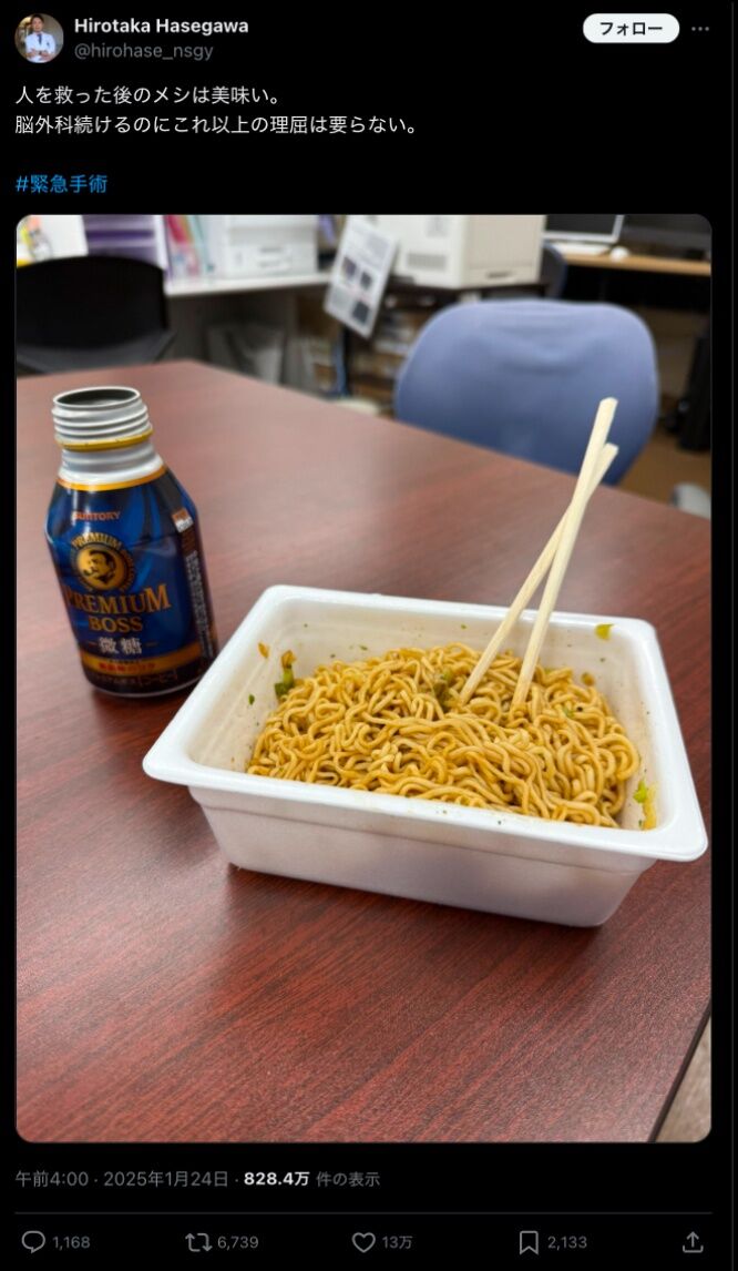 【朗報】脳外科医「人を救った後のメシは美味い。」←14万いいね