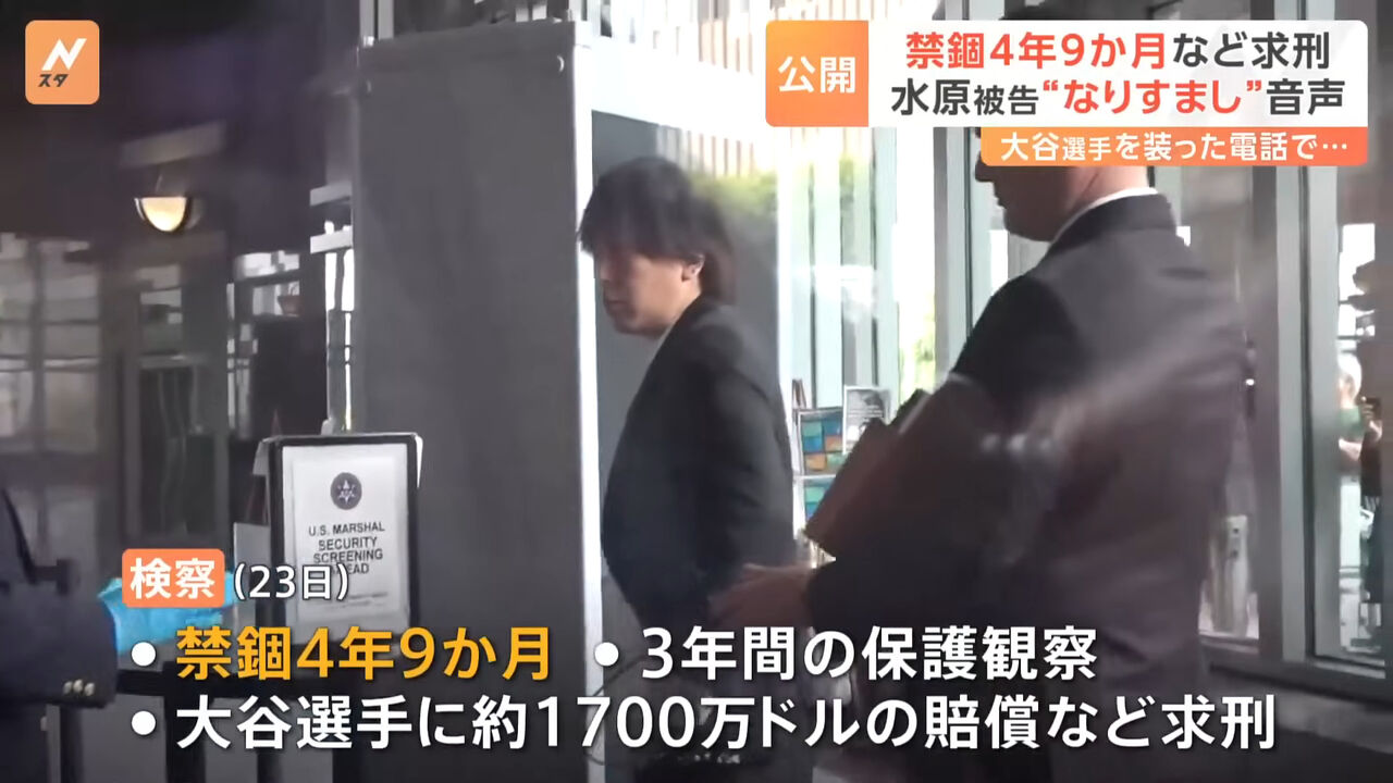 米検察「水原一平に禁固4年9カ月を求刑する」→弁護士「重すぎる。懲役1年6カ月が妥当」