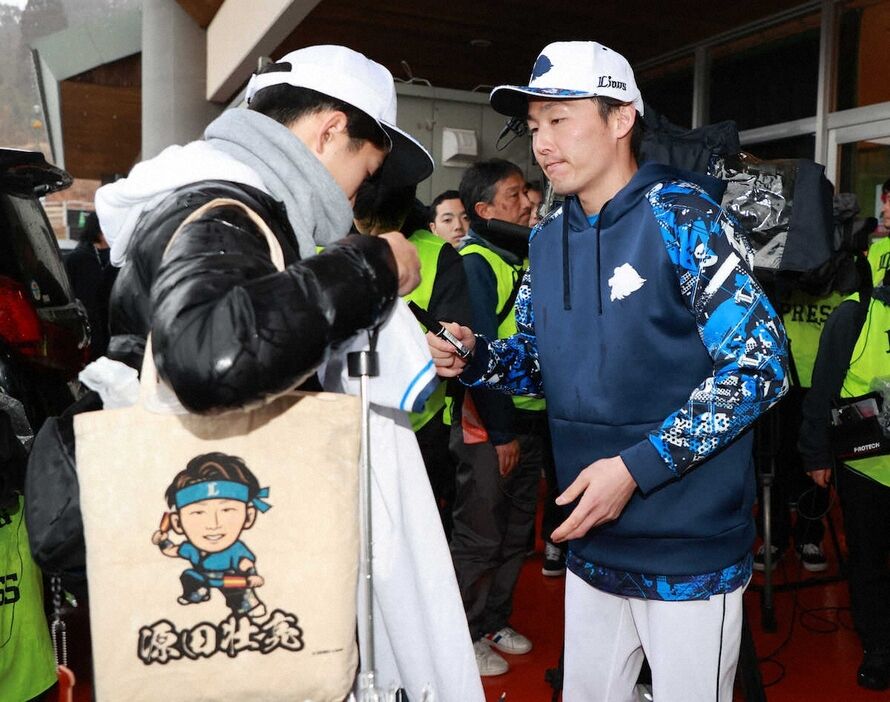 西武・源田壮亮内野手(31)が宮崎・南郷キャンプイン初日の1日、ファンにサイン会を実施した。練習終了後、雨の中、待ってくれたファンに対し、写真撮影やサインの求めに応じるなどファンサービスを行った。