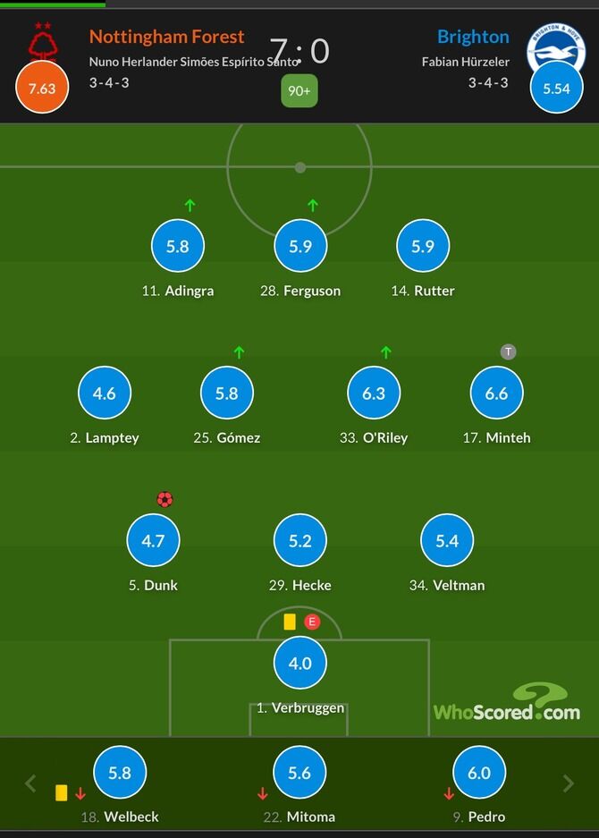 【悲報】ブ三笘薫さん、ノッティンガム戦の評価がかなりヤバイwwwww
