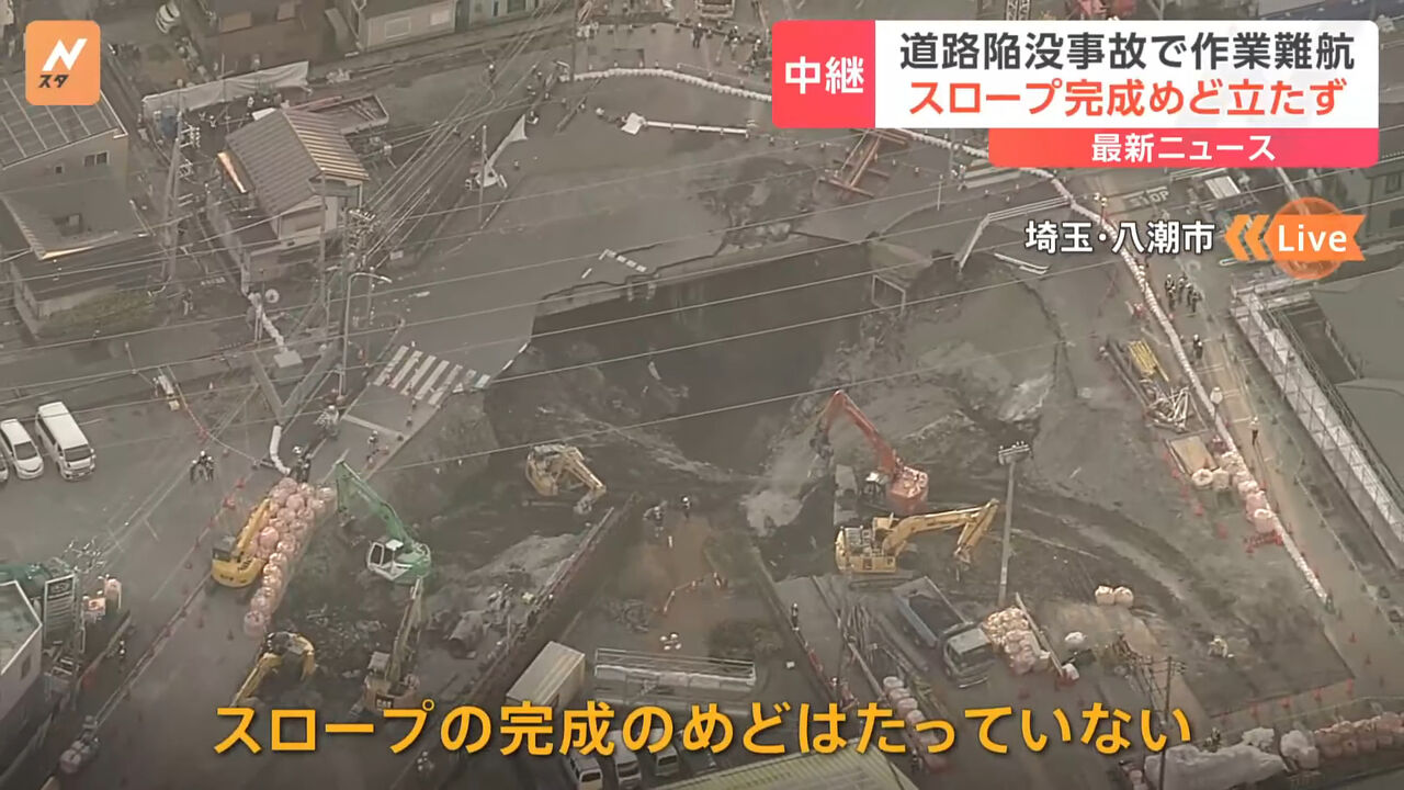 埼玉県八潮市の道路陥没事故で、がれきを撤去するための2本目のスロープについて、完成のめどがたたなくなっていることがわかりました。