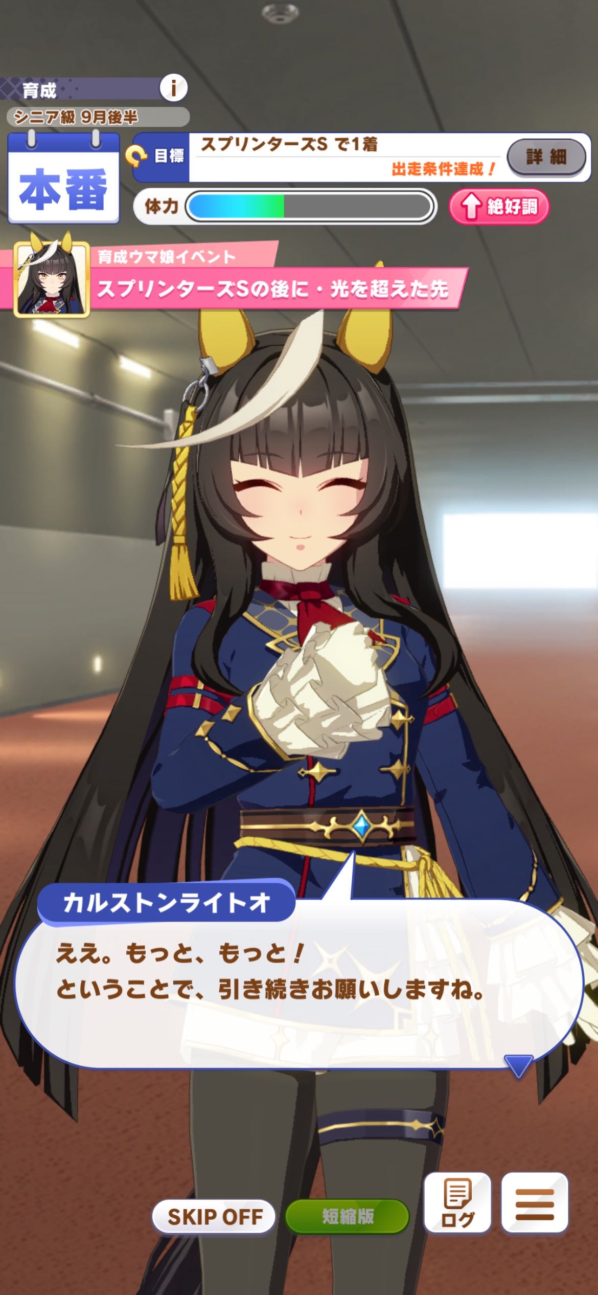 あとバクシンオーがスプリンターの先達として実のあるアドバイスしてくれるのが一日の長らしさ見せてくれるの凄いたのもしいなと思いました