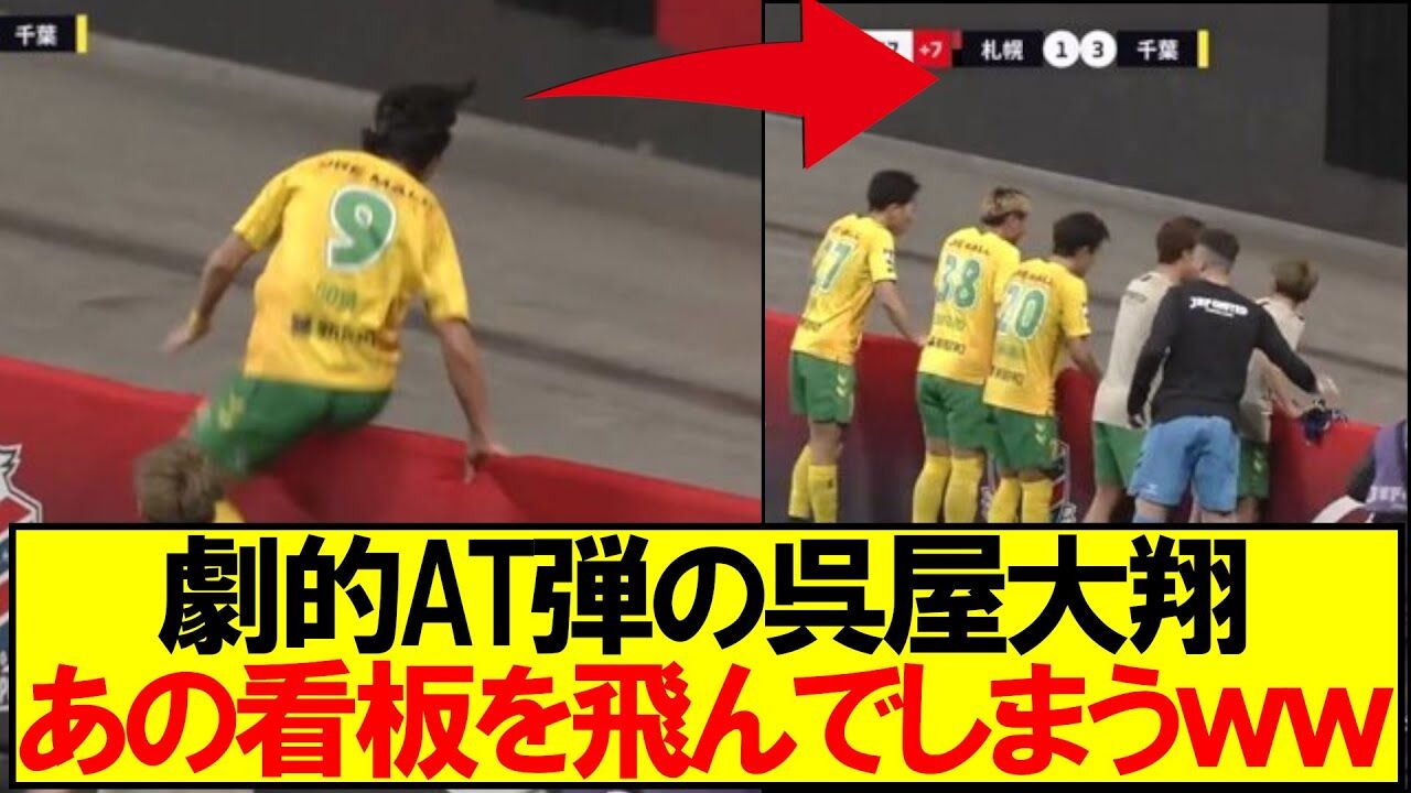 【動画】劇的AT弾の呉屋大翔さん、3mの看板飛んでしまうwww