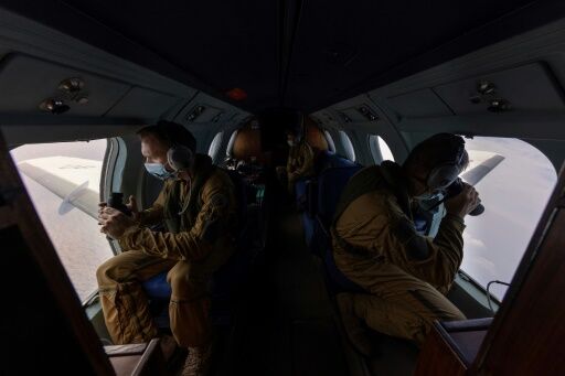 それでも、最良の手段は今なお目視による観測だ。2人の乗員が機内の窓から双眼鏡で海上を監視しながら写真を撮る。
