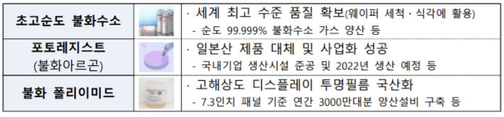 産業通商資源部は17日、「第8次素部装競争力強化委員会」で「対日依存度が高かった『フッ化水素とEUVフォトレジスト、フッ化ポリイミド』の供給安定化目標を達成した」と明らかにした。