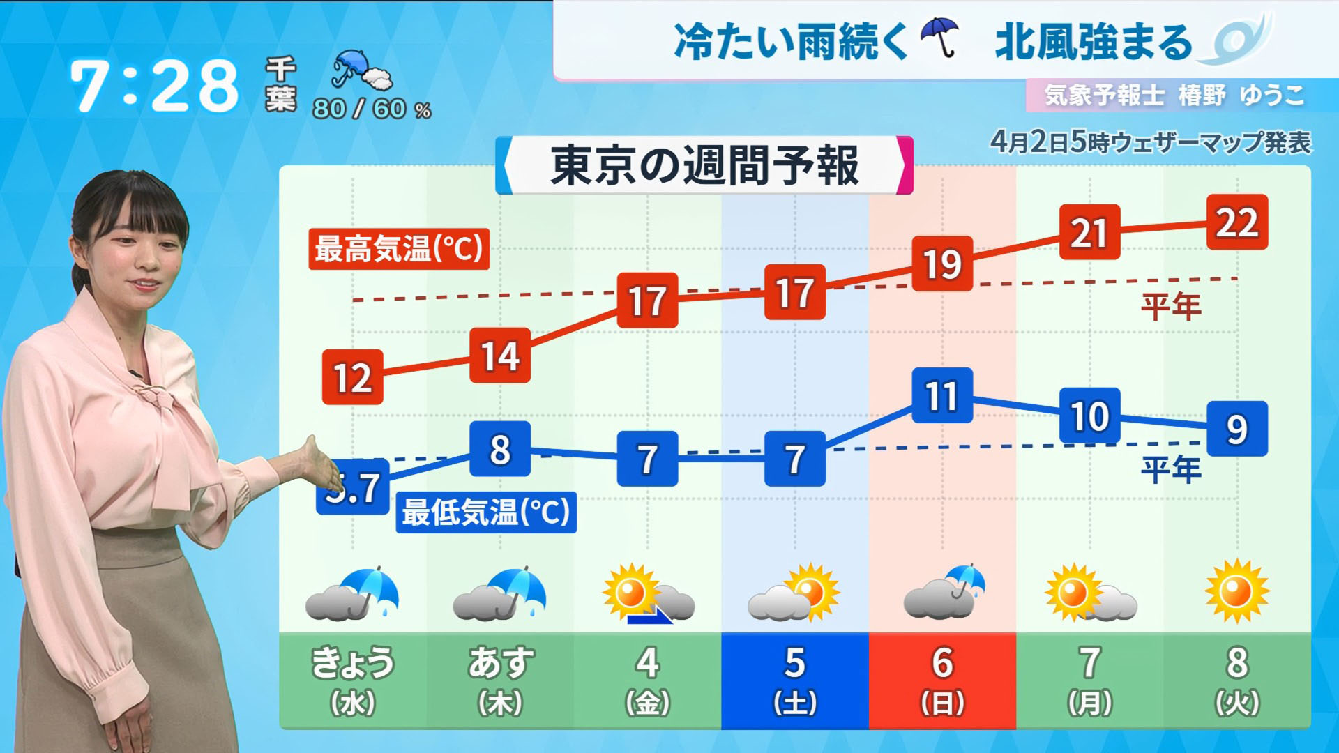 気象予報士・椿野ゆうこキャスターの巨乳です! [2025年4月2日 おはリナ!]