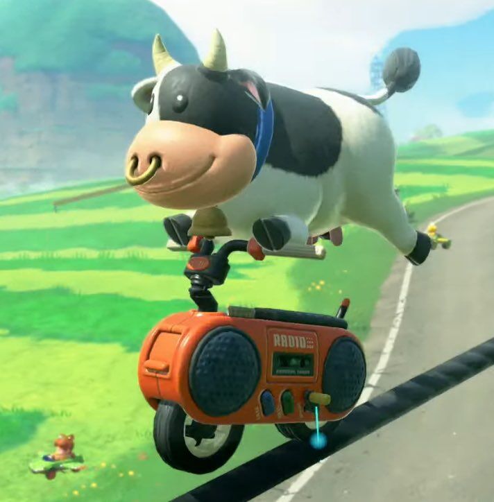 【マリカワールド】よく見ると道路じゃなくてケーブルの上を走ってる謎の牛