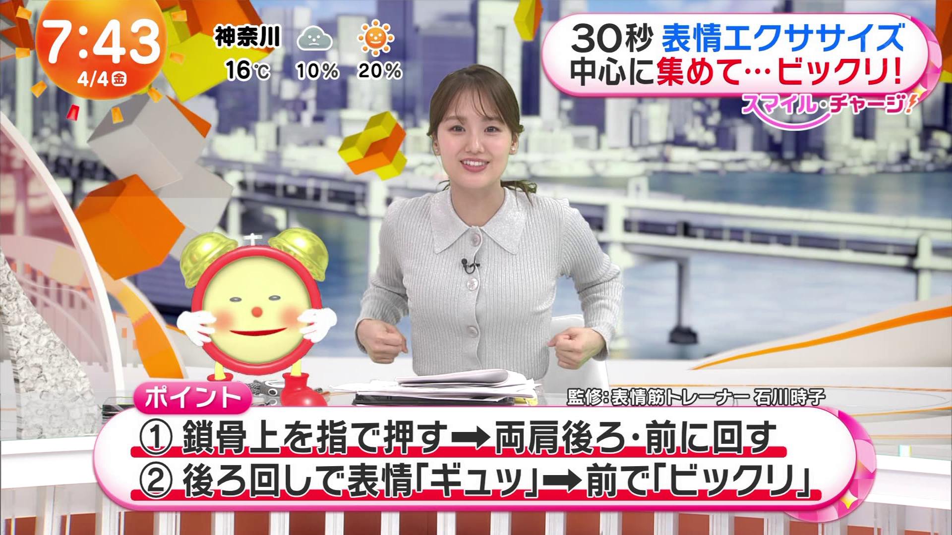 ニットでストレッチをする井上清華アナです! [2025年4月4日 めざましテレビ]