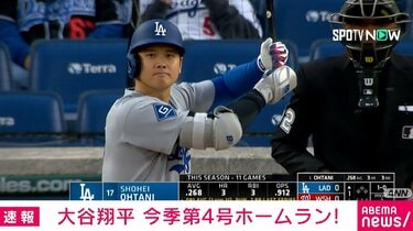 大谷は、東京ドームで行われた3月19日のカ*戦で右中間へ今季初アーチ。米開幕戦となった同27日(同28日)のタイガース戦では逆方向の左翼席へ2号ソロ、4月2日(同3日)のブレー*戦では同点の9回に3号サヨナラ弾を放っていた。