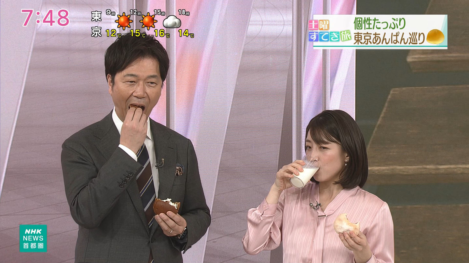 赤木野々花アナ アンパンを食べて牛乳を飲む!