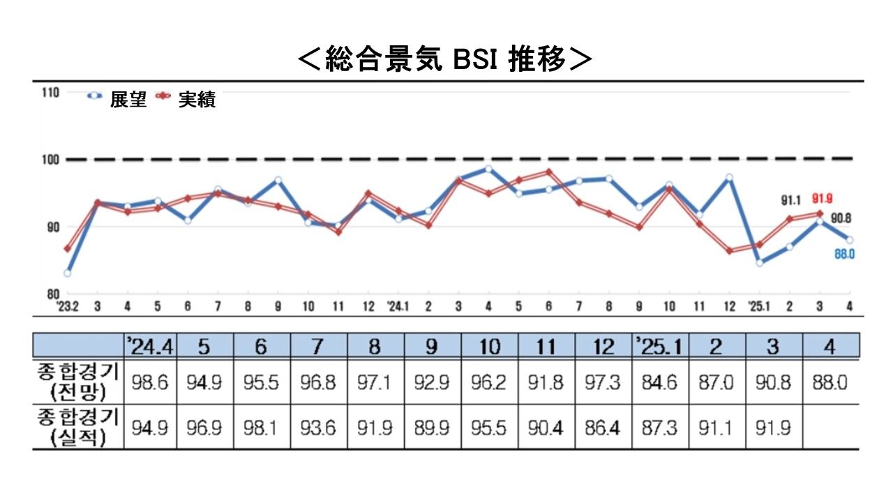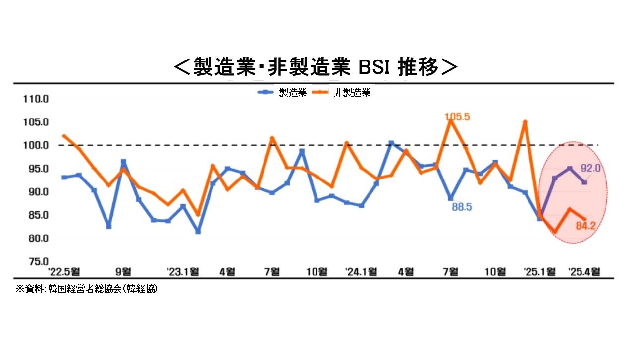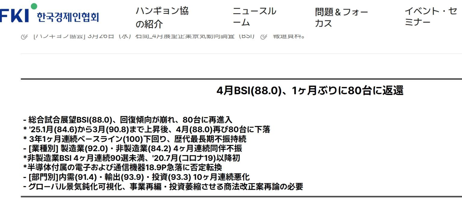 この4カ月連続で90より下というのは、「コロナ禍でソーシャルディスタンスが施行され、内需が極めて萎縮した2020年07月以来初めてのことだ」と、『韓国経済人協会』は指摘しています。