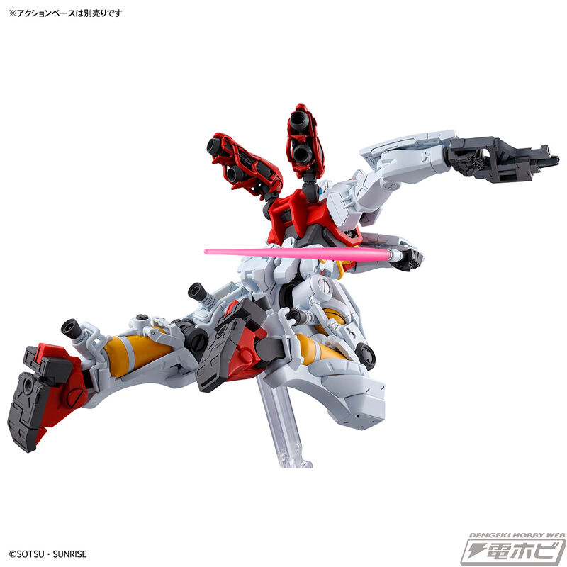 『機動戦士Gundam GQuuuuuuX』(ジークアクス)より、「ゲルググ スガイ機」をHGで立体化。劇中に登場したカラーリングが再現されています。ライフル、サーベルは両手に装備可能。背面スラスターはフレキシブルに可動します。ワイヤーはリード線で表現。また、サーベルはHGオリジナルギミックで上下両方へ取り付け可能です。