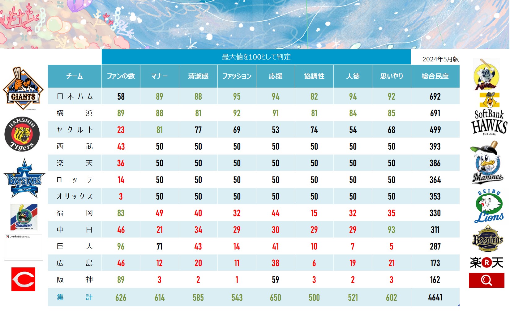 【画像】12球団ファンの『民度ランキング』が意外すぎる・・・・・・