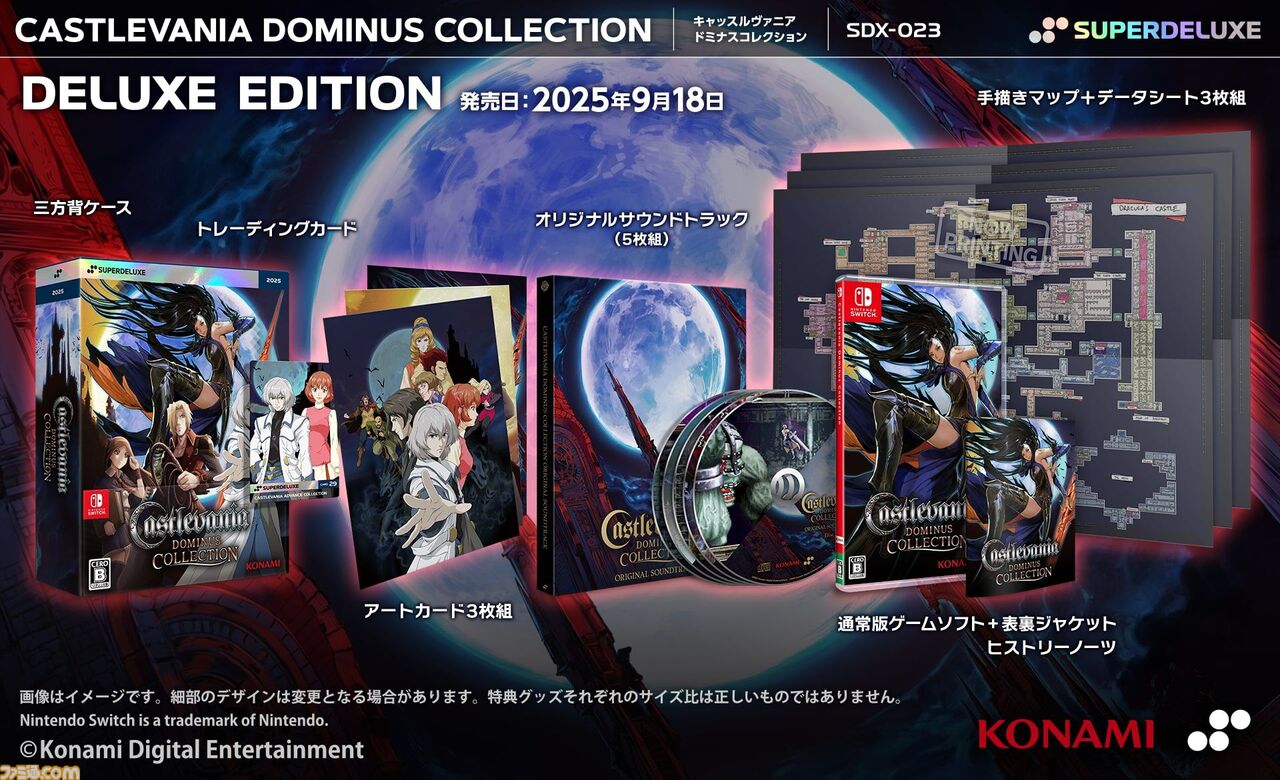 SUPERDELUXE GAMESより、Nintendo Switchおよびプレイステーション5(PS5)向けにパッケージ版『Castlevania Dominus Collection』が発売される。発売日は2025年9月18日予定。