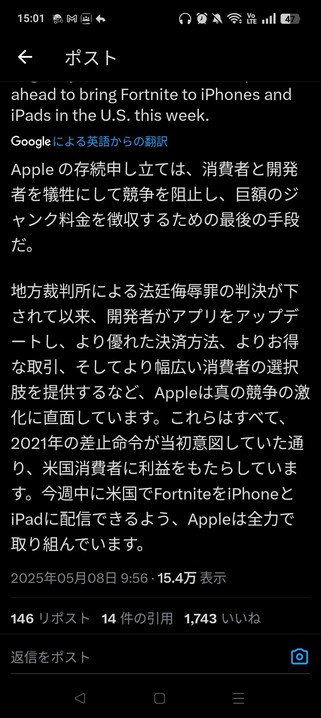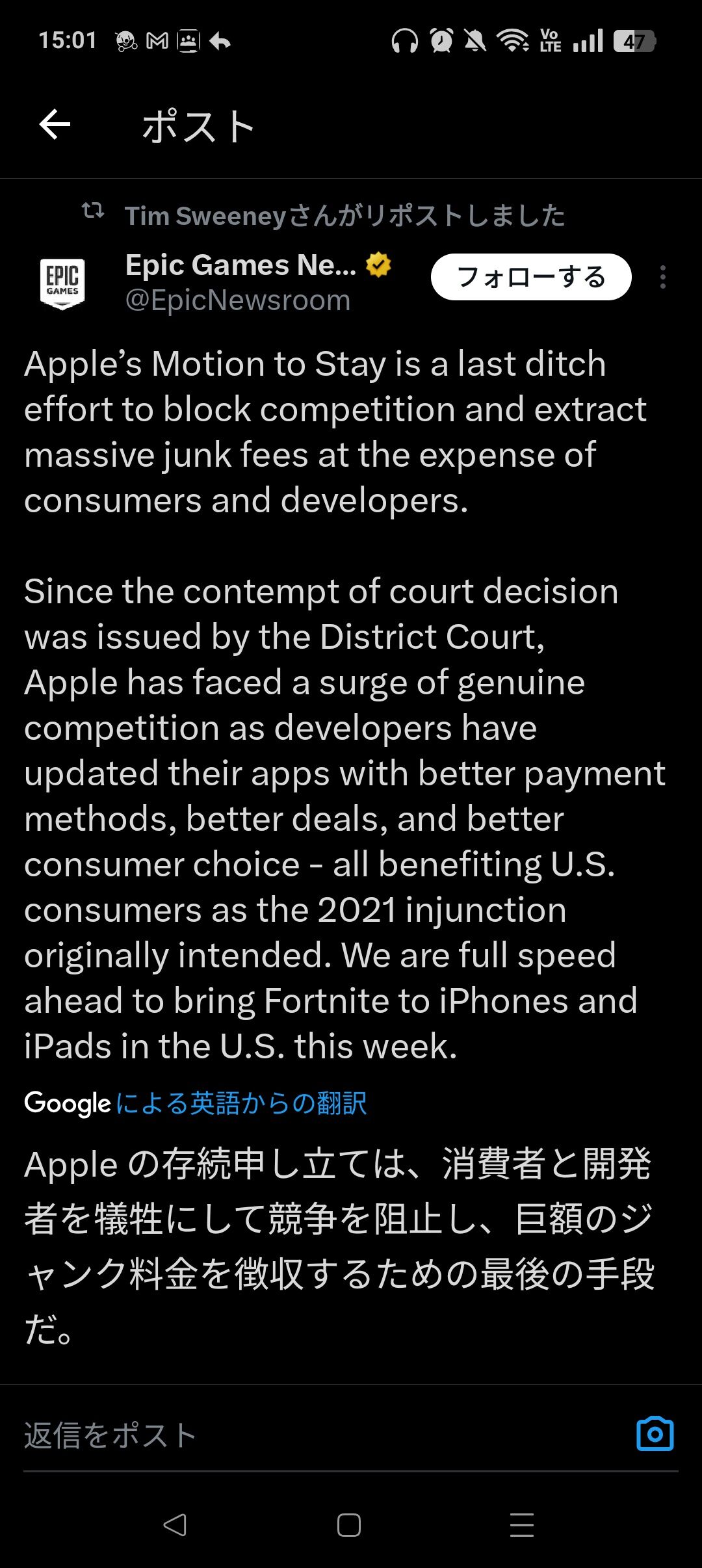 EPIC「裁判勝ったんだしAppストアにうちのゲーム戻して」(6日前)