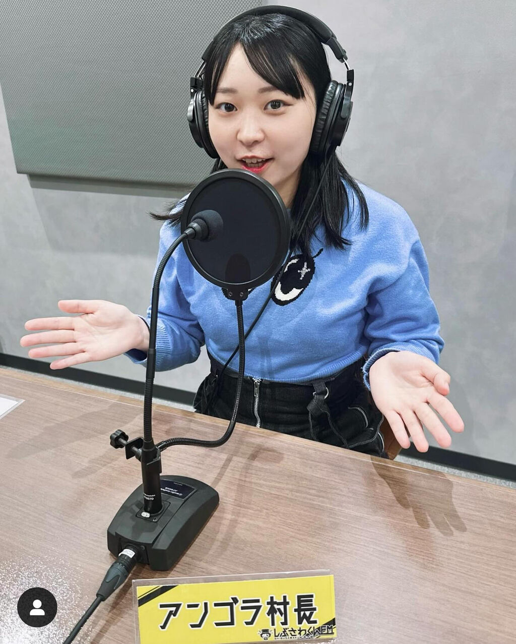 「大嬉しいお知らせです!」と書き出し、「なんとアンゴラのラジオが始まります! 東京都北区のラジオ局『しぶさわくんFM』にて【アンゴラくんラジオ】が爆ハピスタートです!」と報告。マイクの前で両手を広げる姿を公開した。
