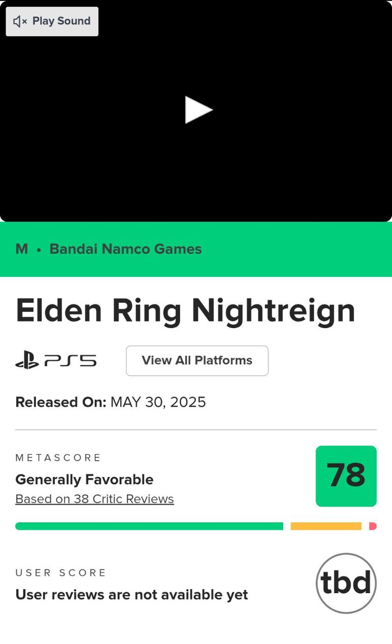 【悲報】『エルデンリング ナイトレイン』、メタスコア78