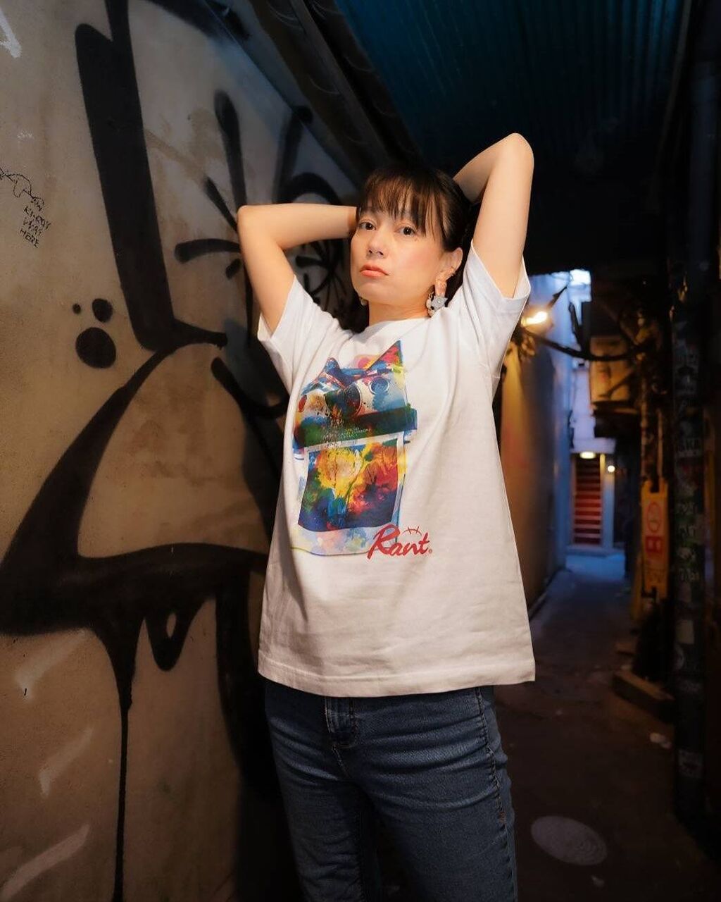 佐伯は「映画がTシャツなどになったよー まずは見てね!」として、赤い壁に囲まれながら、Tシャツを着て、カメラ目線の写真などを紹介。アパレルブランド「Rant」のモデルをつとめた際の写真のようで、相変わらずの目力強めのショットとなっている。
