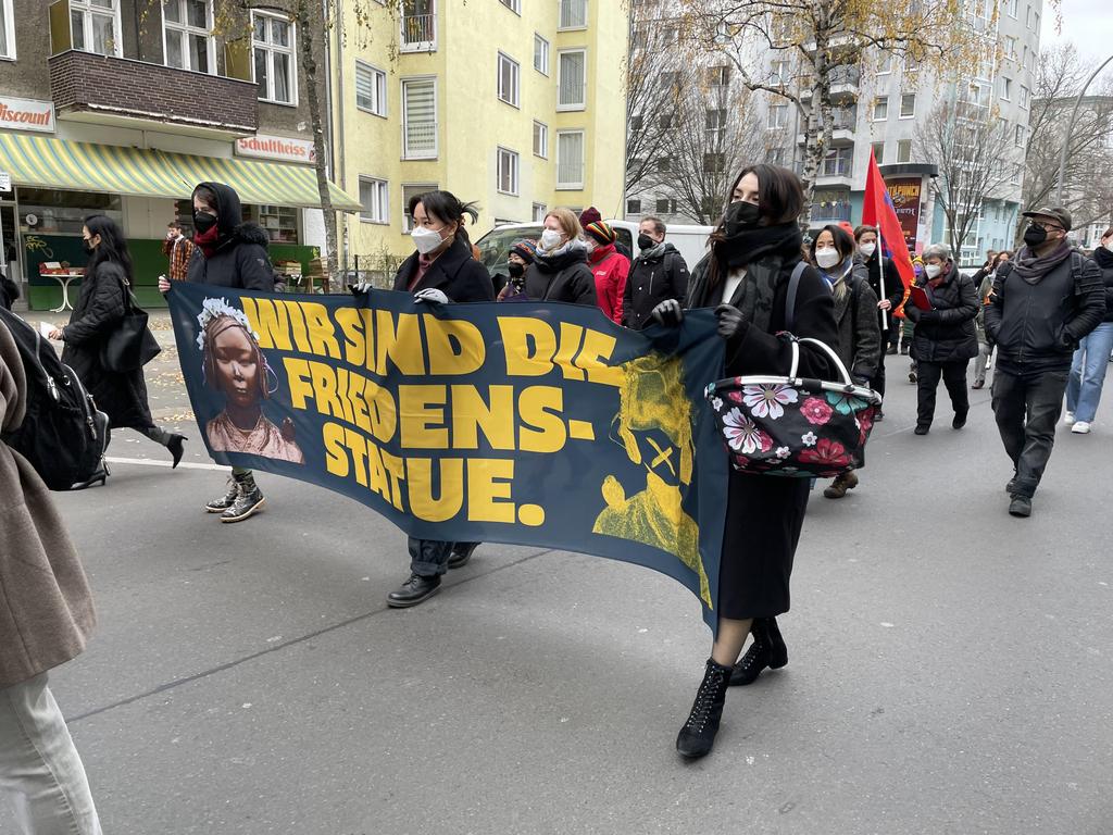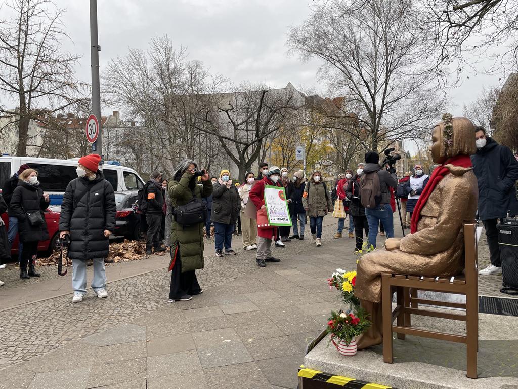 彼らは「自分たちが犯した行為を否認する戦犯国家、加害者の擁護を止め、条件なしに少女像を本来の場所に留まるようにせよ。ベルリン市民は少女像が留まることを望んでいる」と強調した。