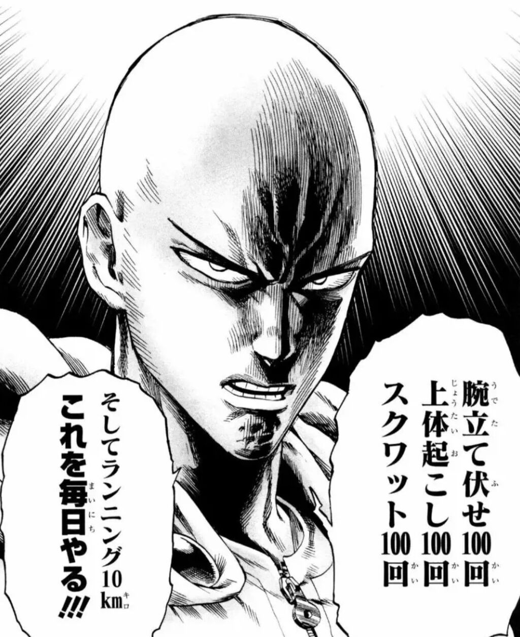 ワンパンマンの主人公「腕立て100回腹筋100回スクワット100回ランニング10km毎日やれ」