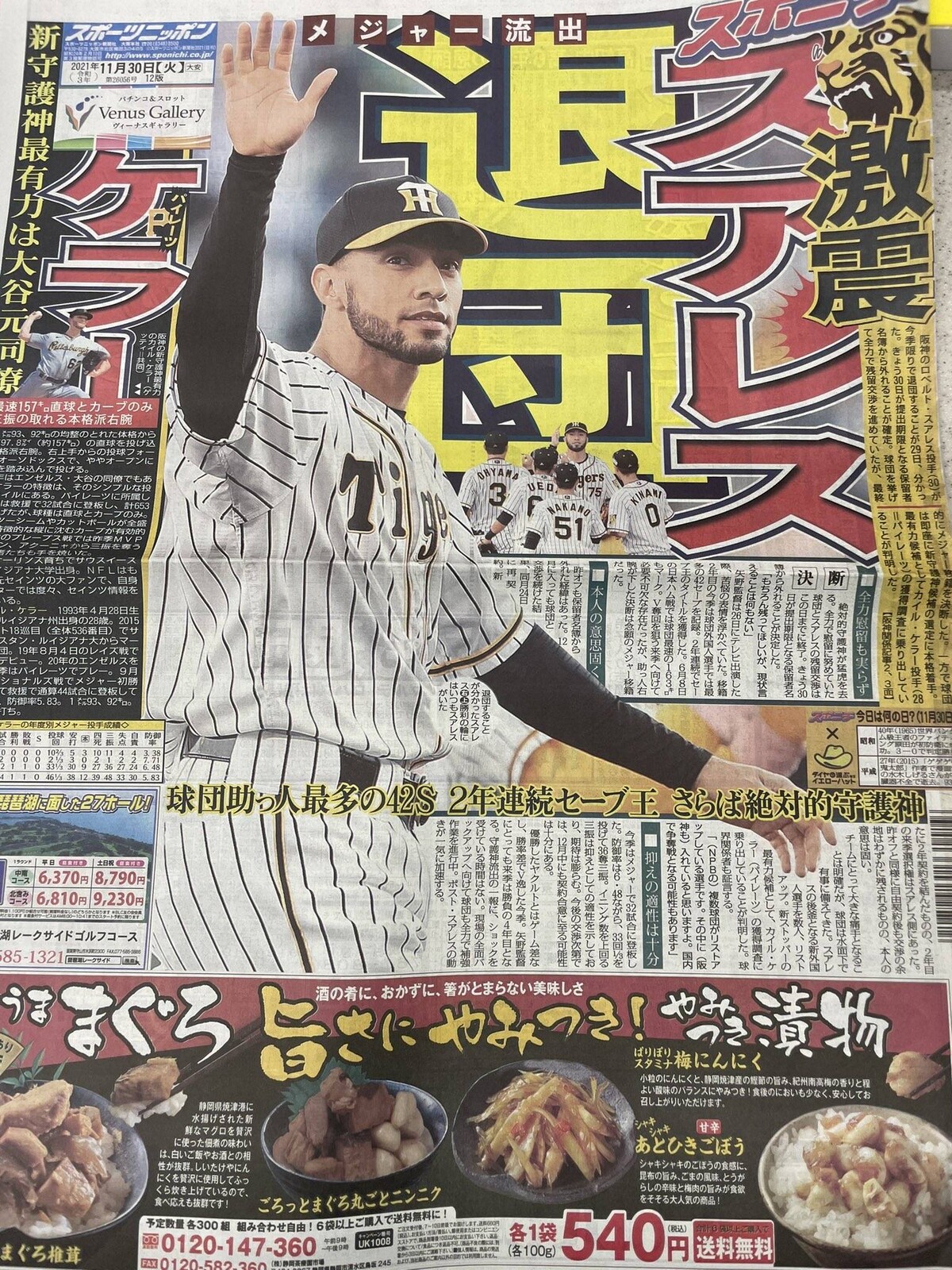 阪神激痛!守護神スアレス退団、メジャー移籍決断 2年連続セーブ王…全力慰留も実らず