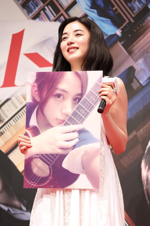 学生時代の写真を披露する池田エライザ(撮影・金田祐二)