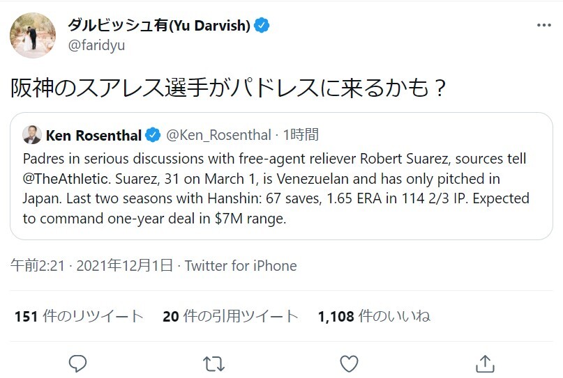 まじで来たら、ダルビッシュ投手に大きな手助けになりますもんね。
